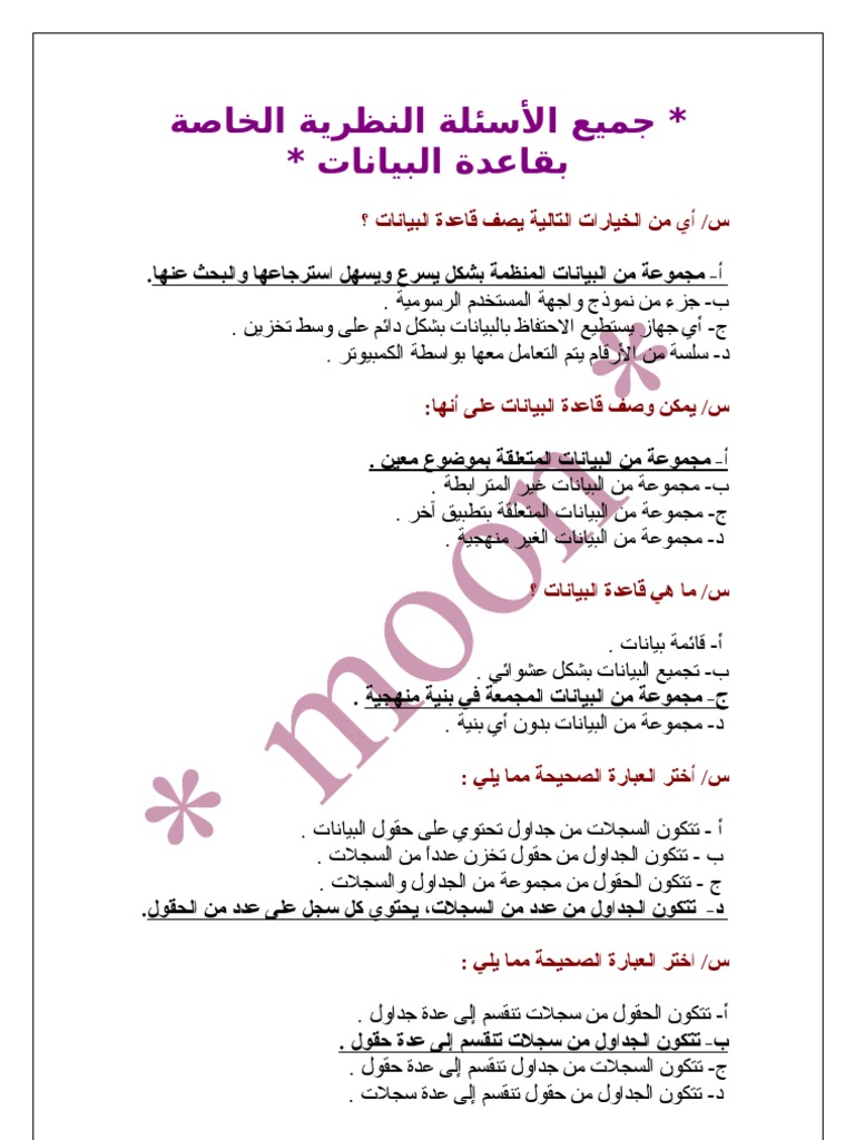 اختر الاجابة الصحيحة لكل عبارة من العبارات الاتية المساعد الشامل