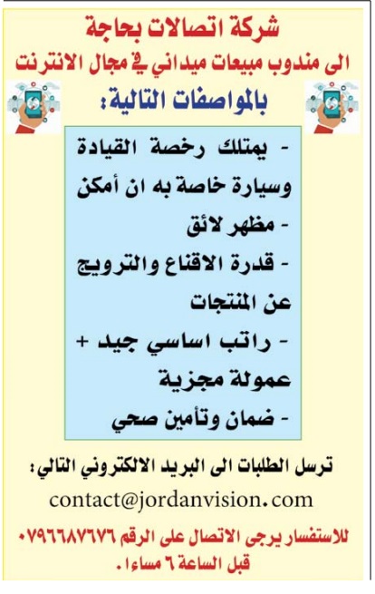 شركة اتصالات مشهورة في الاردن بحاجة الى موظفين براتب اساسي وعمولة وضمان وتامين صحي واحة الوظائف