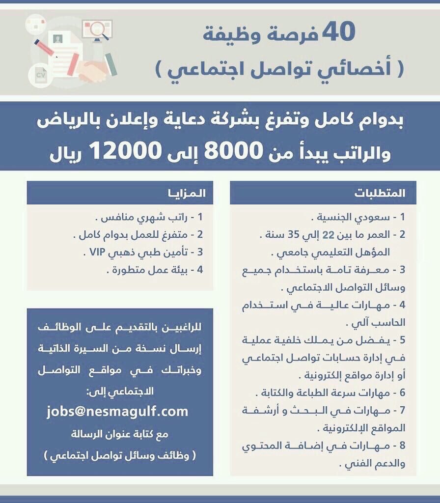 اعلانات وظايف V Twitter اكثر من ٤٠ وظيفة للشباب المهتمين بوسائل التواصل الاجتماعي ويرغبون بالعمل عليها رواتب تصل الي ١٢ ألف ومزايا وظائف Https T Co 8j0fghebo0